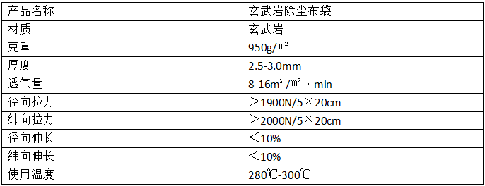 玄武巖除塵布袋作為一種新型材料能夠在280℃-300攝氏度以下的工況條件下長(zhǎng)期使用,并保持性能不變,由于制造工藝流程及原料配方性,比同類產(chǎn)品性能大大提高了除塵效率及使用壽命。