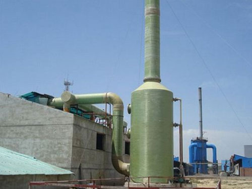鍋爐除塵器的煙氣運行路徑:煙氣從現(xiàn)有的靜電除塵器和鼓風(fēng)機通過煙道系統(tǒng);流過一個軸流增壓風(fēng)機,進(jìn)入脫硫塔。煙氣進(jìn)入脫硫塔后,與包含氨水漿液的逆流噴漿接觸,其中的SO2由氨水漿液吸收。漿液同時使氣體飽和,并將其從入口的135℃溫度冷卻到50℃,緊接著氣體穿過脫硫塔頂部兩個波紋型除霧器,兩層有效的除霧器安裝于脫硫塔的上部,以便去除(煙氣中)附帶的液滴。運行的噴霧塔中的氣體,離開脫硫塔,再次通過鍋爐,以重新加熱氣體,并以80℃的溫度、按設(shè)計的操作條件進(jìn)入現(xiàn)有的煙囪裝置。