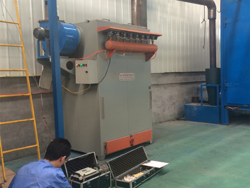 單機(jī)除塵器工作原理:當(dāng)含塵空氣通過時(shí),即可有效的使用固相與氣相分離開來,起毛的濾袋是一種多孔性的濾塵材料,當(dāng)氣流通過時(shí),所含微粒觸及濾袋外壁絨毛而發(fā)生旋轉(zhuǎn),由于迷宮、碰撞篩濾作用、使氣流中的微粒吸附在濾袋上或沉降下來,凈化后的空氣即可排出,為了清理附著和沉入濾袋的灰塵,在每班通風(fēng)機(jī)停止運(yùn)行時(shí)(每隔約 2-4 小時(shí))順序振動(dòng)三組濾袋,每次振動(dòng) 20 下左右。