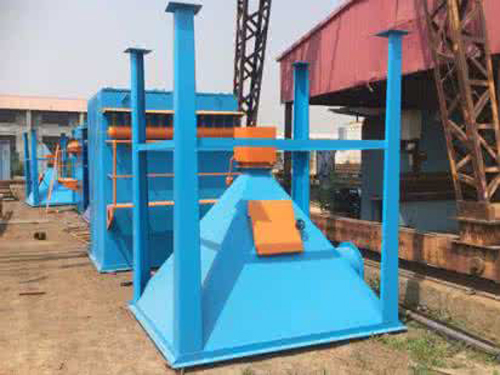 本除塵器由上、中、下箱體、排灰裝置及噴吹清灰系統(tǒng)五部分組成。上箱體包括可掀起的頂蓋和出風(fēng)口。中箱體內(nèi)有花板、濾袋組件、防爆泄壓閥、_濾袋等。下箱體有灰斗,進(jìn)風(fēng)口及檢修門。排灰裝置為重力卸灰閥或者回轉(zhuǎn)卸料閥。噴吹清灰系統(tǒng)由脈沖控制儀,電磁氣閥,噴吹管及氣包組成。