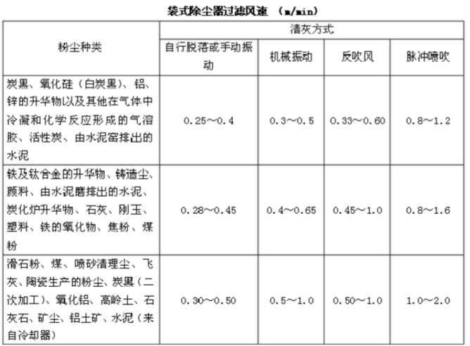 一般風(fēng)速可以到1.0-1.5,玻纖覆膜1.0以下,火電廠0.9以下,好的是0.8左右,生物質(zhì)發(fā)電,風(fēng)速可能以0.7以下為好,常溫袋過濾風(fēng)速控制在1.2m/min;高溫袋過濾風(fēng)速控制在1.0m/min為宜。布袋除塵器過濾風(fēng)速的大小,是和多方面有關(guān)的,主要取決于粉塵特性及濃度大小、氣體特性、濾料品種以及清灰式。對(duì)于粒細(xì)、濃度大、粘性大、磨啄性強(qiáng)的粉塵,以及高溫、高濕氣體的過濾,布袋除塵器過濾風(fēng)速宜取小值,反之取大值。對(duì)于濾料,機(jī)織布阻力大,過濾風(fēng)速取小值,針刺氈開孔率大小。